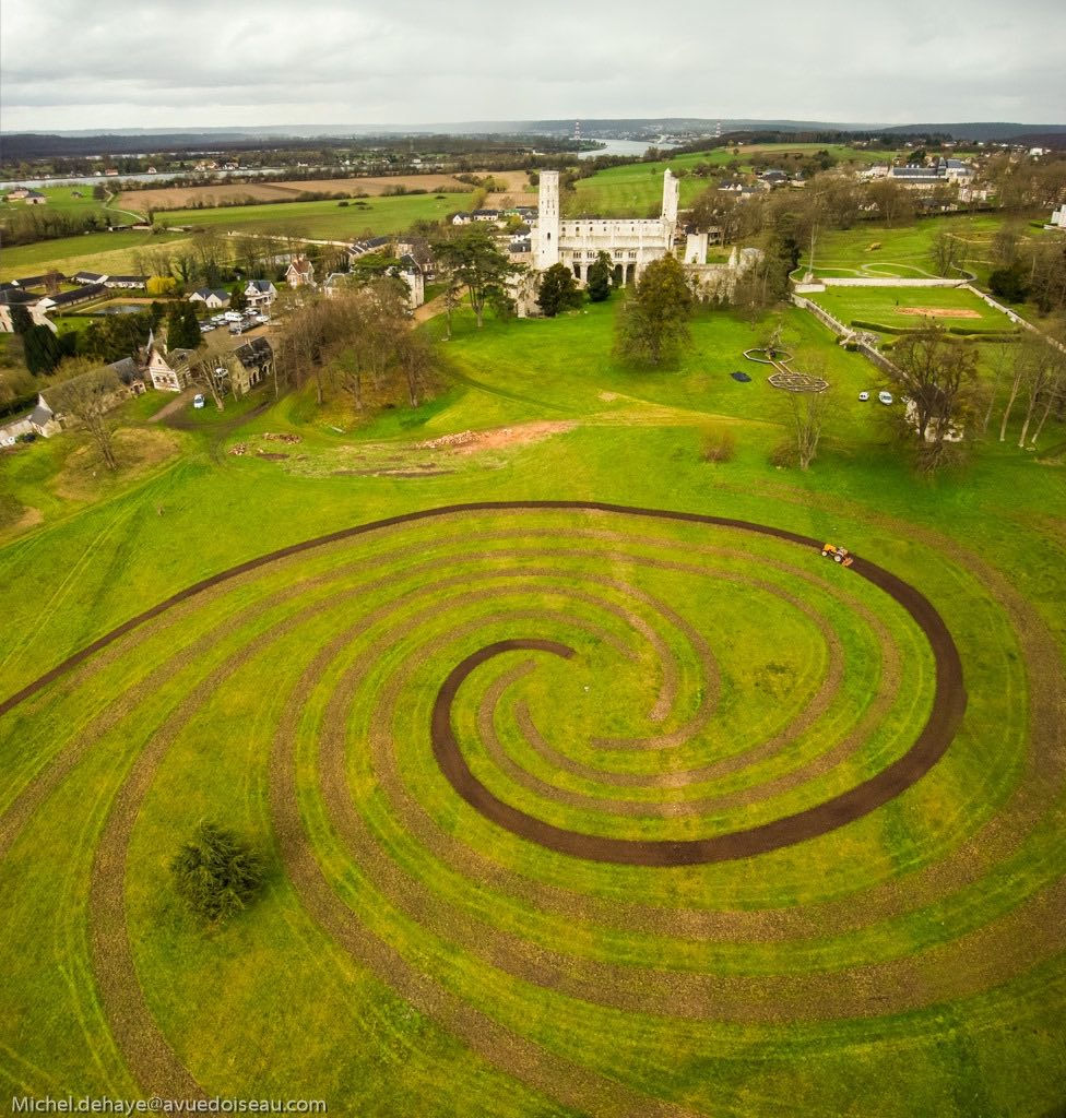 J’ai souhaité rendre hommage aux innombrables histoires qui s’y sont déroulées en dessinant un tourbillon composé de multitudes de fleurs pour évoquer les 1359 années du lieu. Un grand tourbillon végétal répond aux spectaculaires ruines de l’abbaye de Jumièges.
